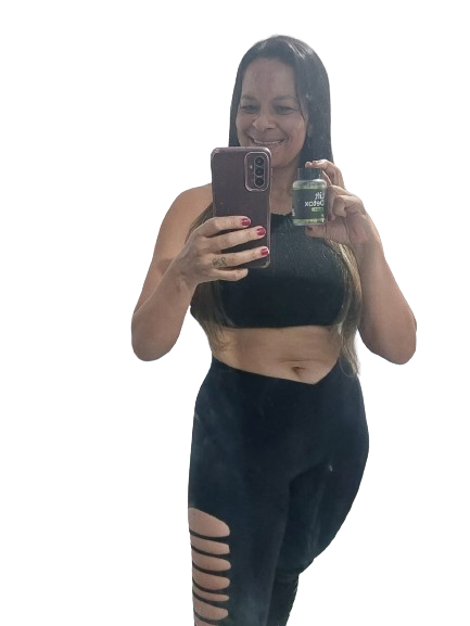 Depois da gestação a minha barriga não voltou, me sentia desmotivada com o meu corpo, eu tinha compulsão por doces, por causa da ansiedade, e isso só foi piorando com o tempo, corpo inflamado, intestino preso e muito inchaço corporal, com filho ainda pequeno, não tinha tempo de ir á academia.